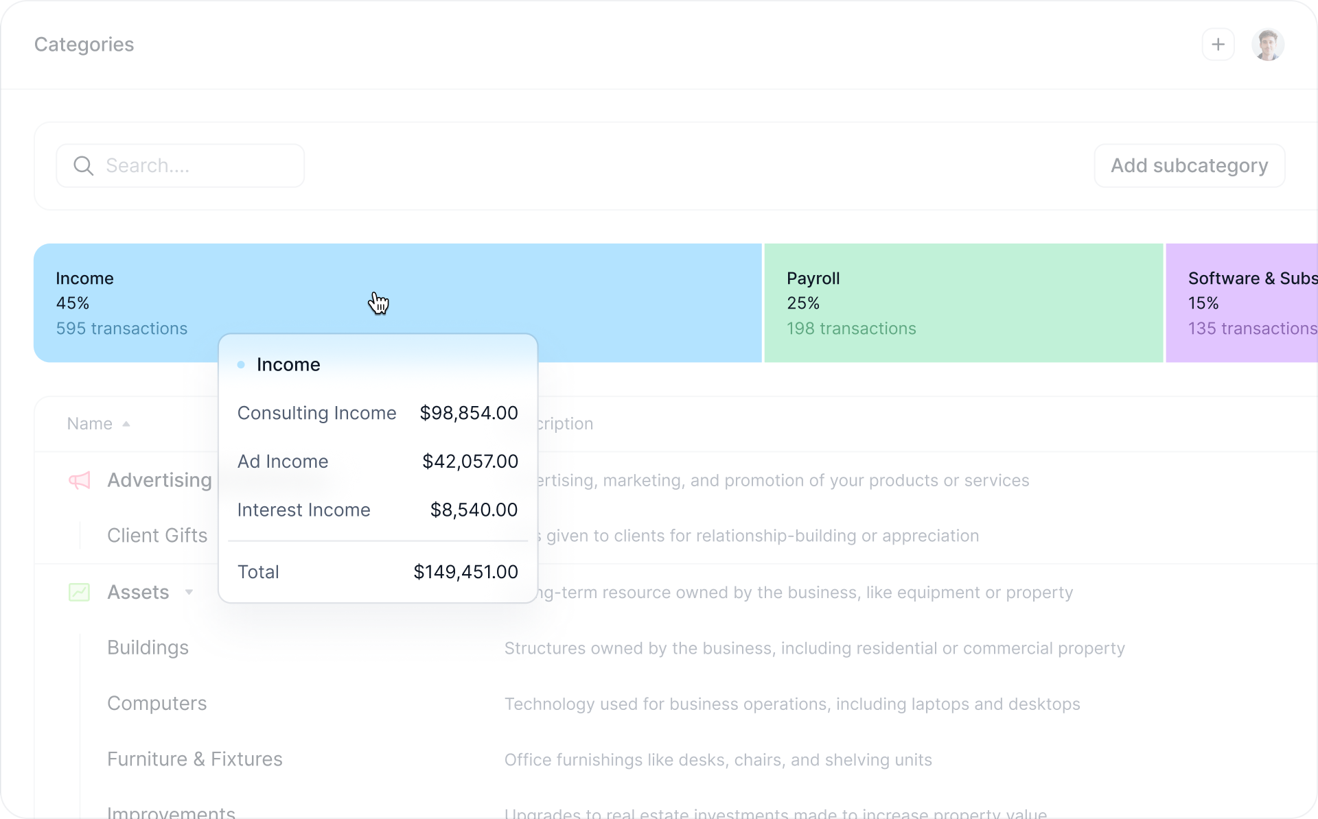 You now have access to a dedicated Categories tab, where you can filter, sort, search and manage custom transaction categories.